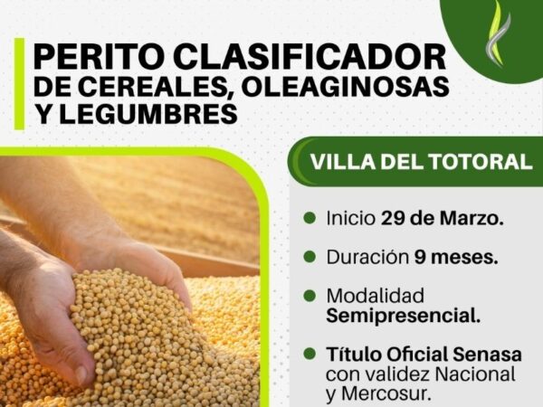Villa del Totoral La Municipalidad de Villa del Totoral, a través del Área de Desarrollo Social, invita a la comunidad a participar del Curso de Perito Clasificador de Cereales, Oleaginosas y Legumbres, una excelente oportunidad de desarrollo personal y laboral… Ver más →